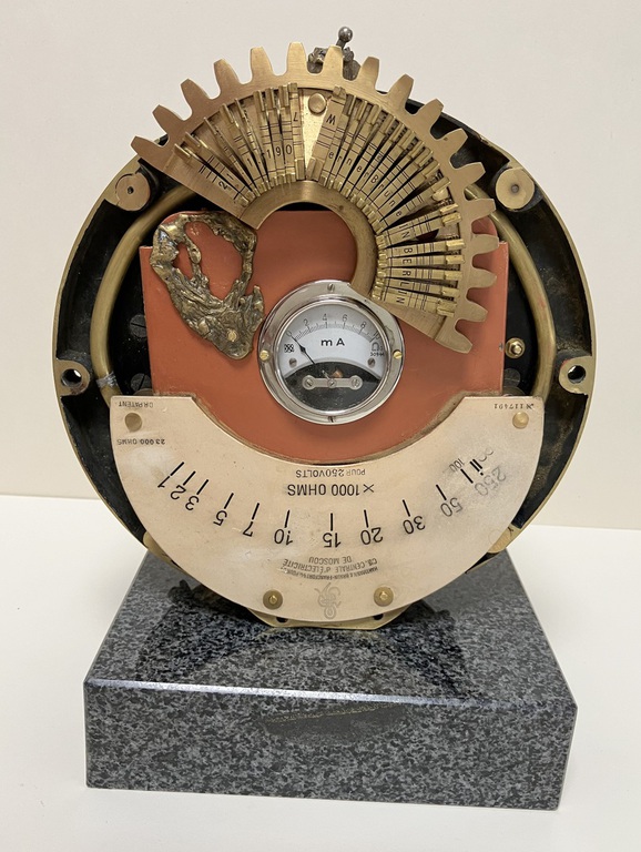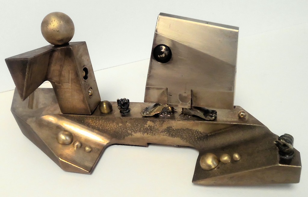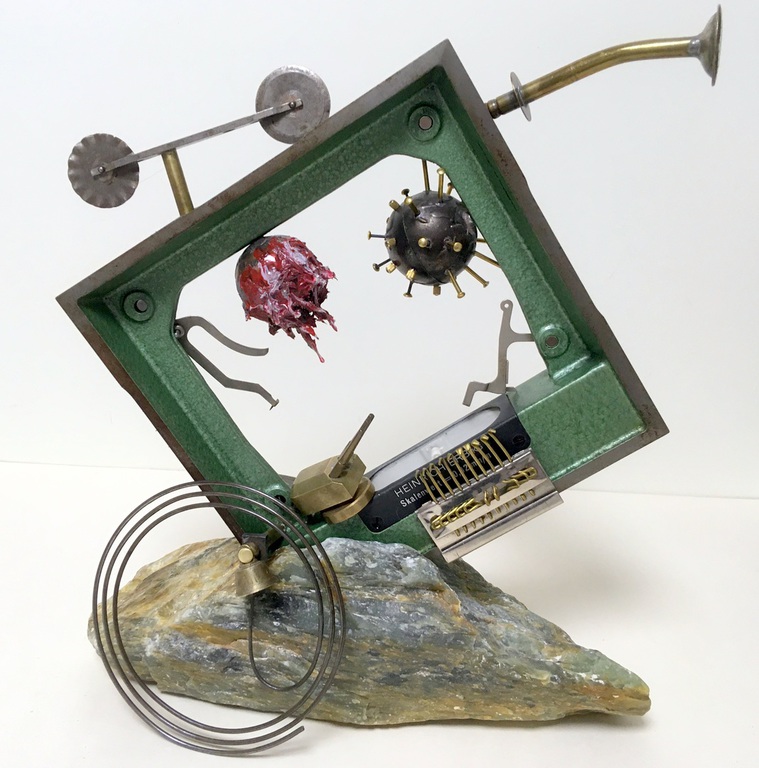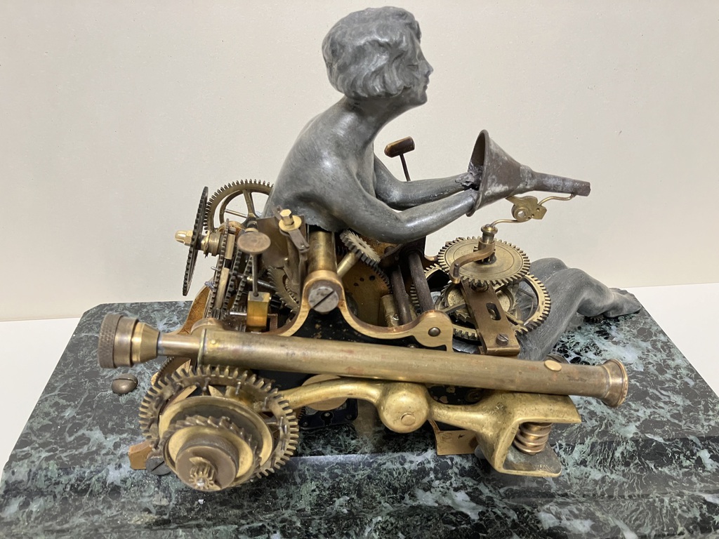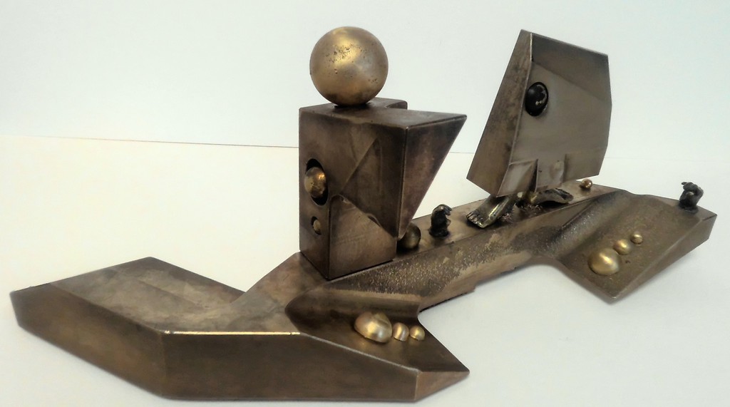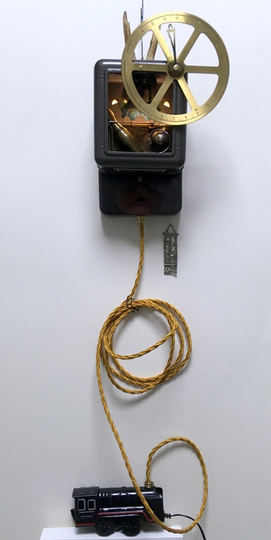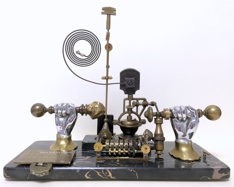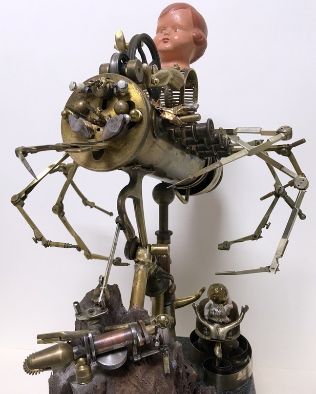 Antique technical objects and items are assembled into unsusual, unique object figures. Upcycling art has been produced that opened up a completely new contexts of meaning, giving free rein to the viewer's imagination. Each part of a figure already has its very own story and now, as a complete figure, tells a new story in a contemporary context. An old padlock with a hidden signature completes the figure.