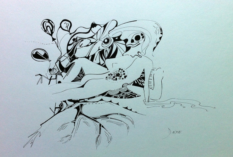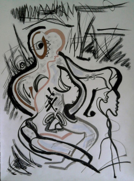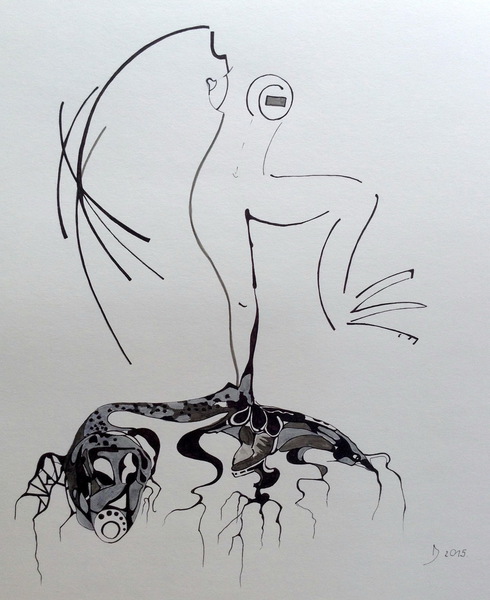 Serie/ series: "Im Tempel des Ichs", 2013, Mischtechnik auf Zeichenpapier/ Mixed technique on paper