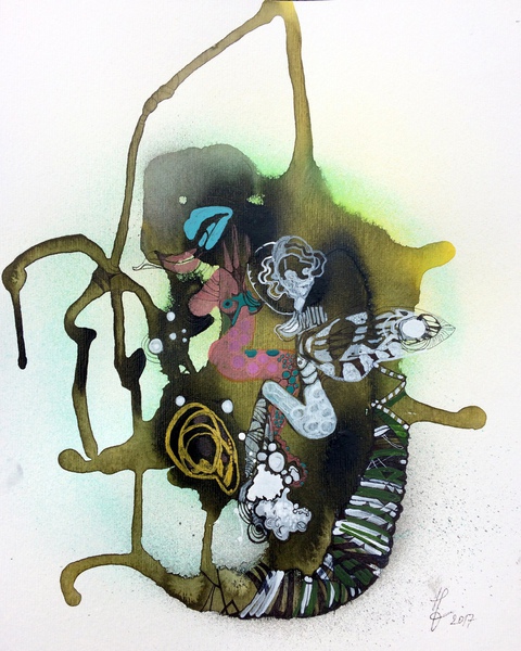 Serie/ series: Metamorphe Reflexionen, 2017, Mischtechnik auf Zeichenkarton / Mixed technique on paper